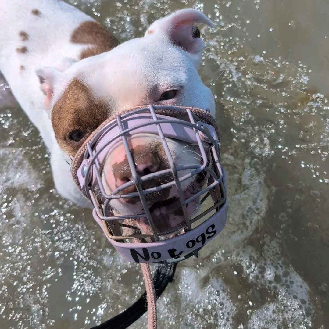 Theo was very tentative about the water, so my partner went in to his waist, and me to a little bit further in than Theo, holding the lead but letting him make his own choices as to when to paddle and when to get out. I kept the lead slack and we used our voices and energy to encourage him. I didn't want to push him so letting him make the choice was most important in that moment.