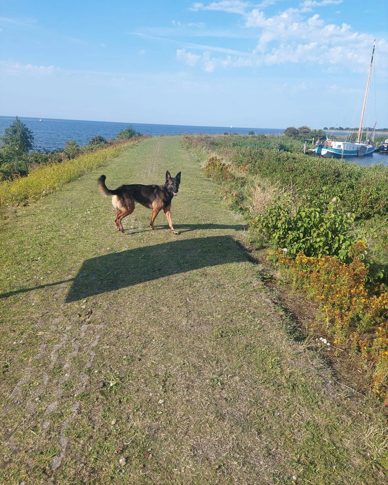 Today we walked right past a busy construction site, without stress. Something that would have been impossible a few months ago. Not a single flight attempt. No tail tucked to her belly. A bit apprehensive still, but she looked at me for guidance and stayed close to my leg for safety.